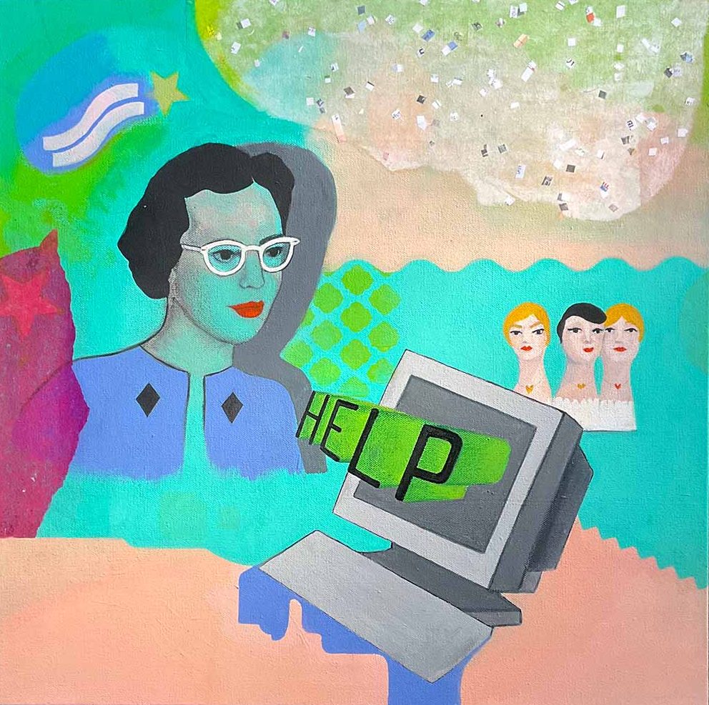 Hi, I’m Angela! This site gathers all of my creative projects in one place. Use the links on the side to explore my work. Below is my newest piece – its an acrylic painting on 20×20″ canvas.